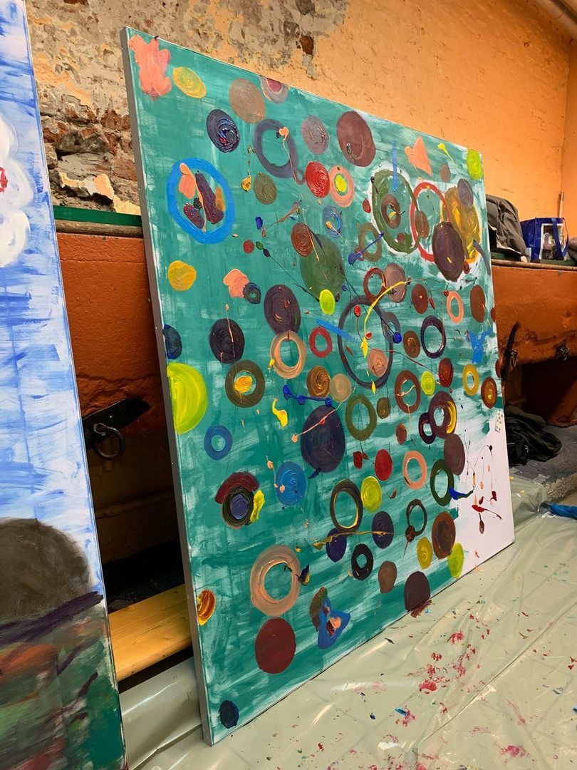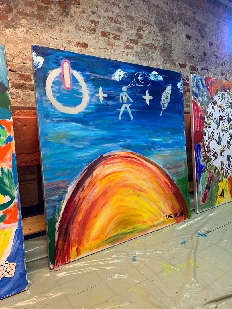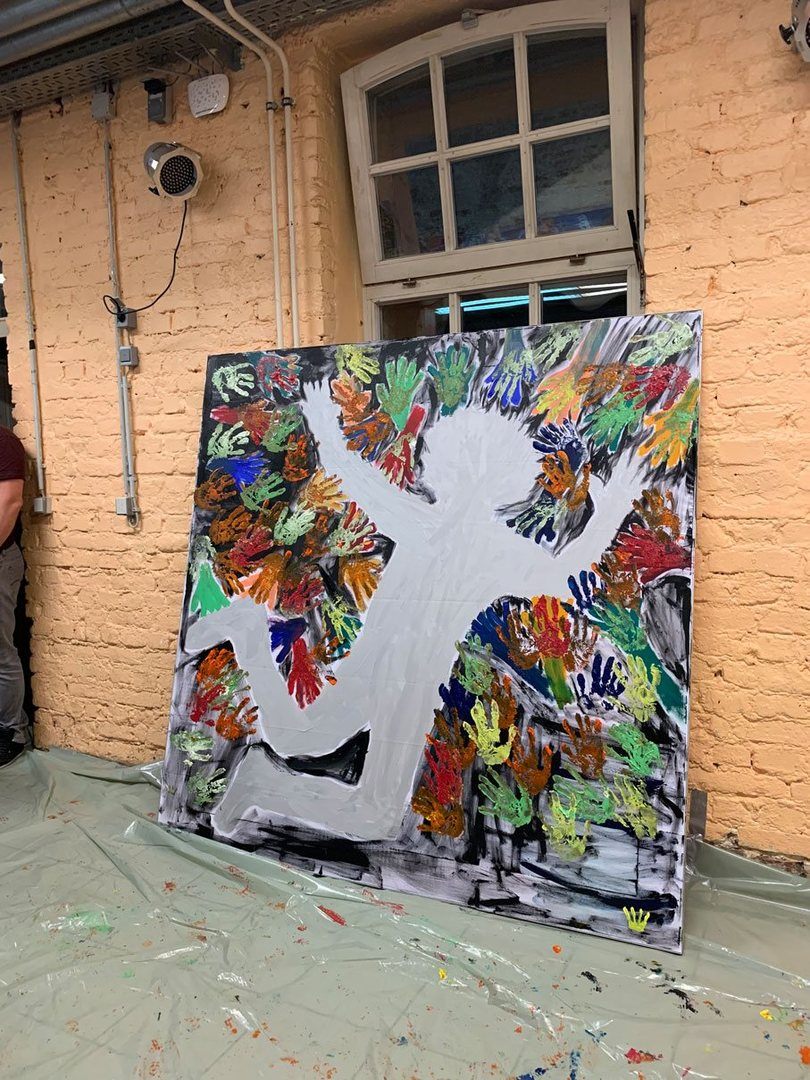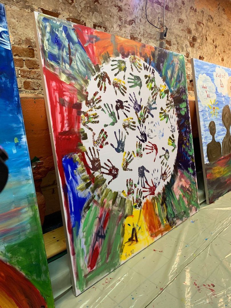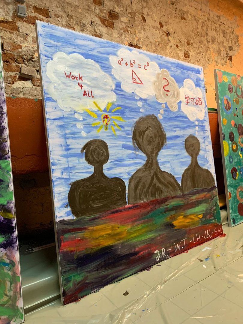 Und dann ging es auch schon los! Jedes Team durfte sich frei austoben auf den 1,80 m x 1,80 m großen Leinwänden (made by WUM Design).