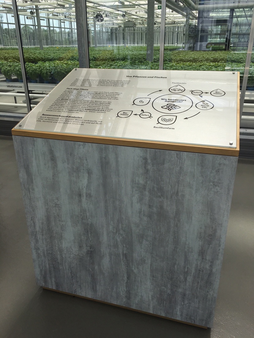 REWE Green Farming ist nicht einfach ein Supermarkt, sondern auch Produktionsstätte mitten in der Stadt. Auf einer Dachfarm wachsen jährlich 800.000 Basilikumpflanzen. Als Dünger nutzt REWE die Ausscheidungen einer Fischzucht, die ebenfalls im Marktgebäude unterhalten wird. Dadurch kommen Basilikum und Fisch auf dem kürzesten Transportweg frisch und ressourcenschonend in den Supermarkt.